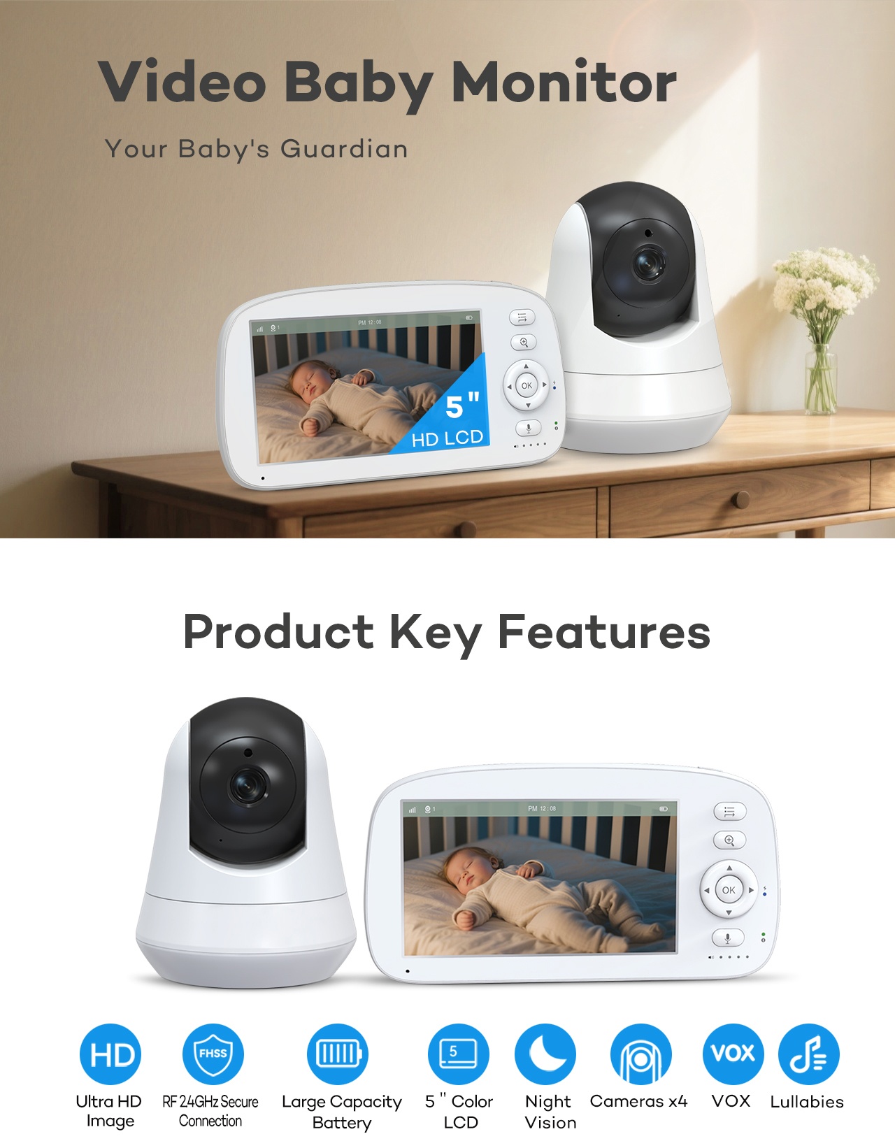 5” Video Baby Monitor BM5GQE