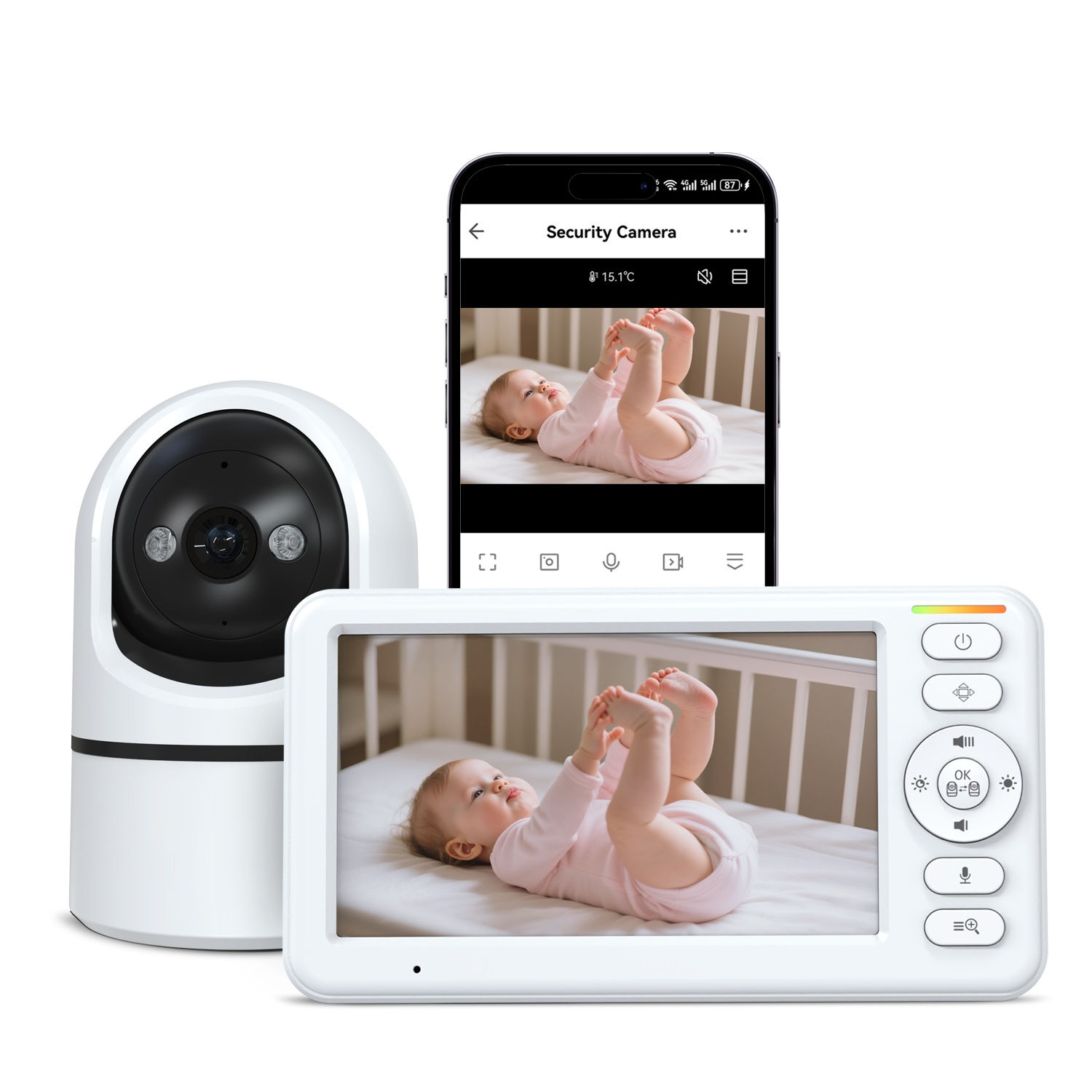 Complete Room Vision: With 360° Pan-Tilt-Zoom, you can remotely steer the camera to see every corner of the nursery from the monitor or your phone.